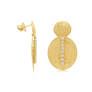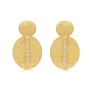 Brushed Finish Gold Disc Earrings With Diamond Strand