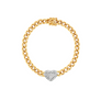 Cuban Chain Two-Tone Pavé Diamond Heart Bracelet