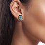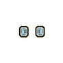 Diamond and Black Enamel Framed Blue Topaz Studs