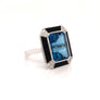 Diamond and Onyx Framed Ring With Blue Topaz Center - Doves by Doron Paloma