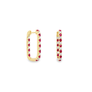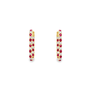 This stunning hoop earring features a captivating design adorned with vibrant rubies and sparkling diamonds. Crafted with precision, it adds a touch of elegance to any outfit, making it perfect for both casual and formal occasions. Elevate your jewelry collection with this exquisite piece that embodies luxury and style.
