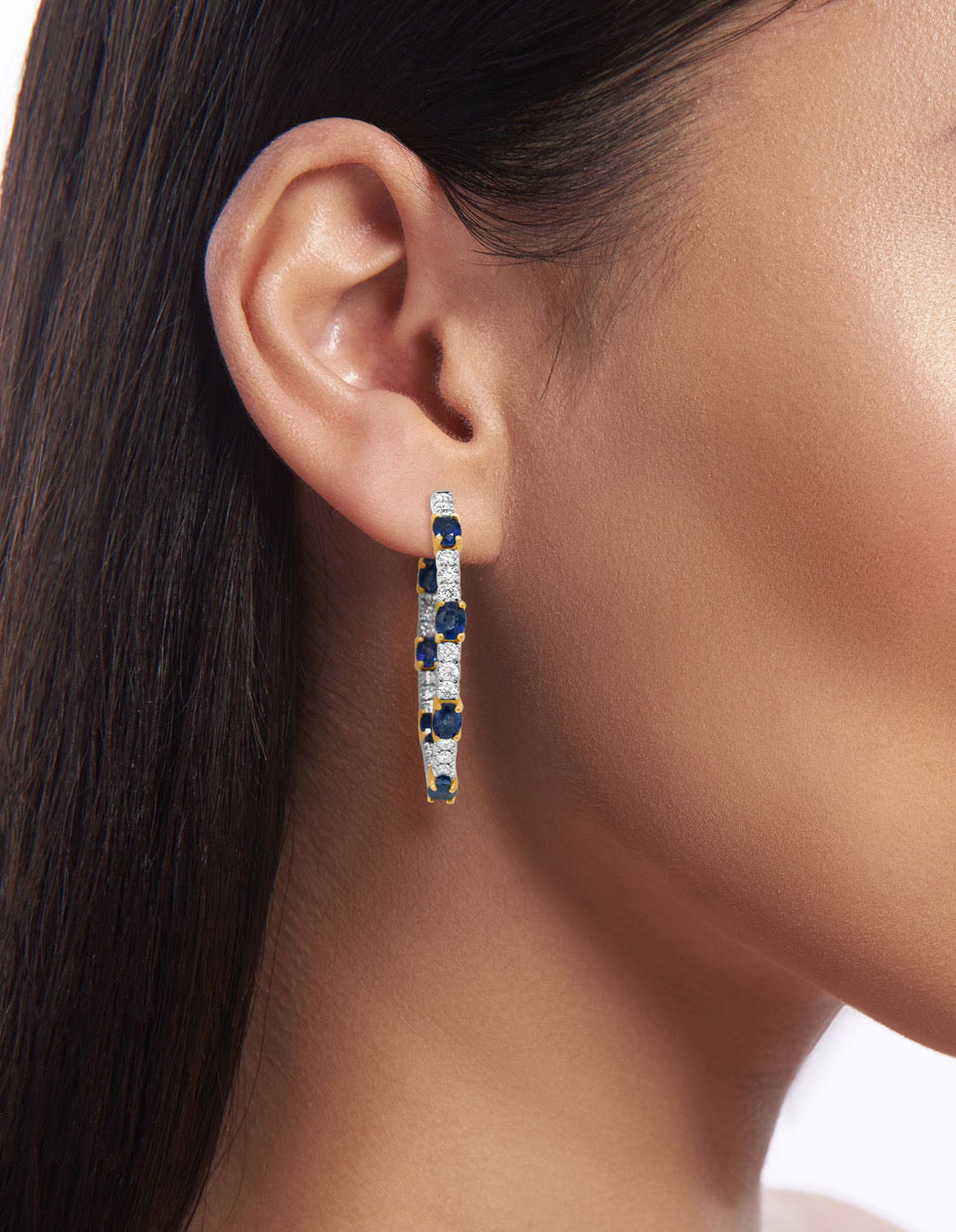 Two-Tone Diamond and Oval Sapphire Hoop Earrings